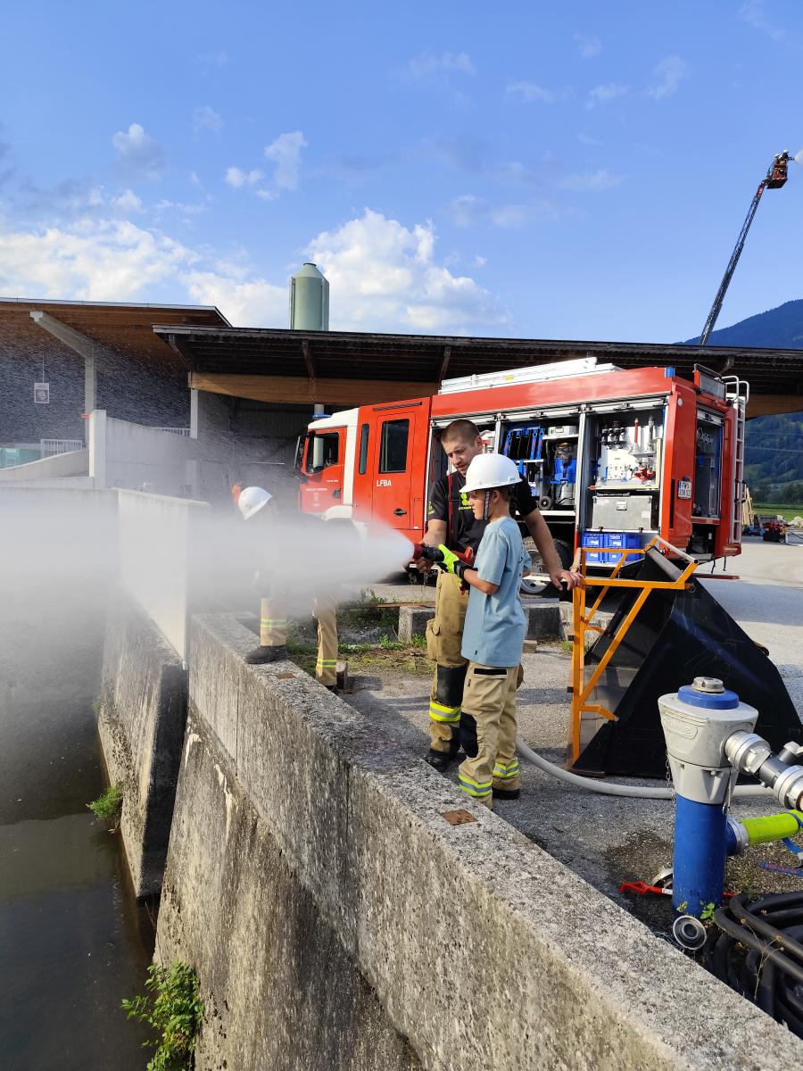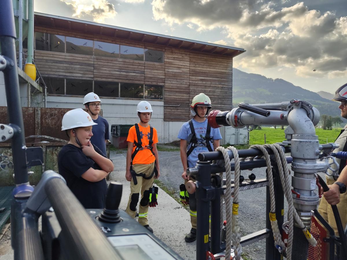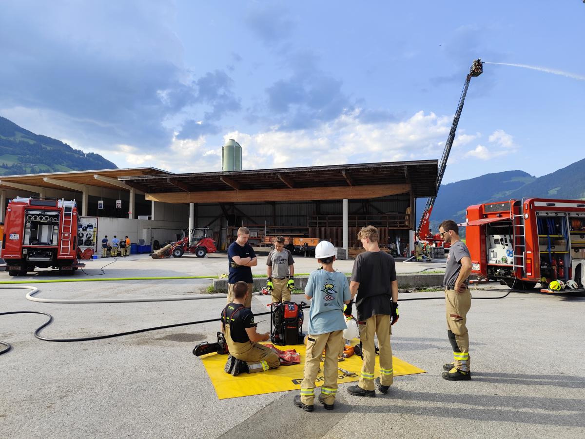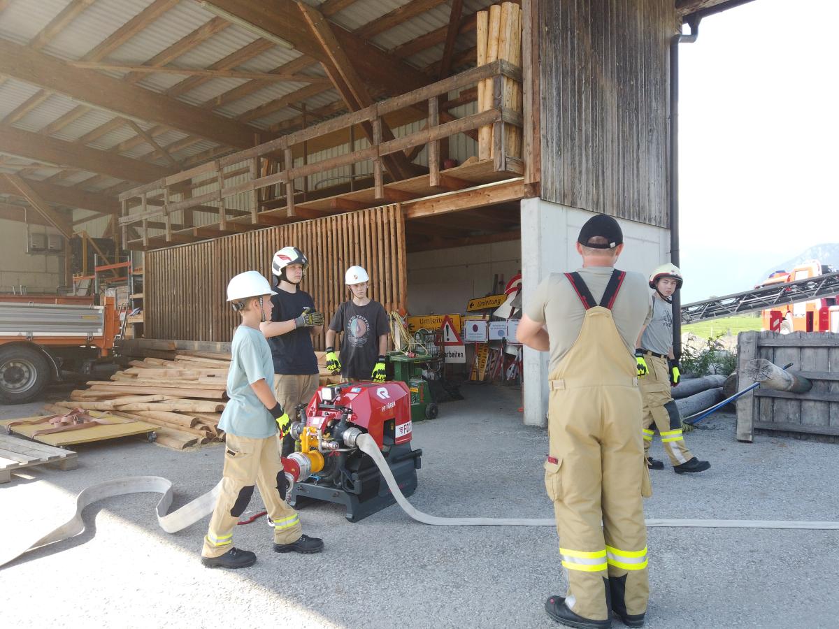 Ein Holzstapel beim Bauhof stand in Brand. Aufgrund der Größe des Feuers, gingen mehrere Anrufe bei der Leitstelle ein, die jedoch keine Alarmierung auslöste, da es sich um eine gemeldete Übung handelte. Bevor das Feuer endgültig gelöscht war, durften alle Jugendlichen die große Hitze hautnah spüren.