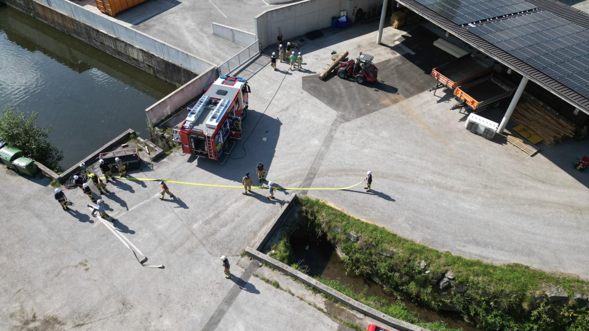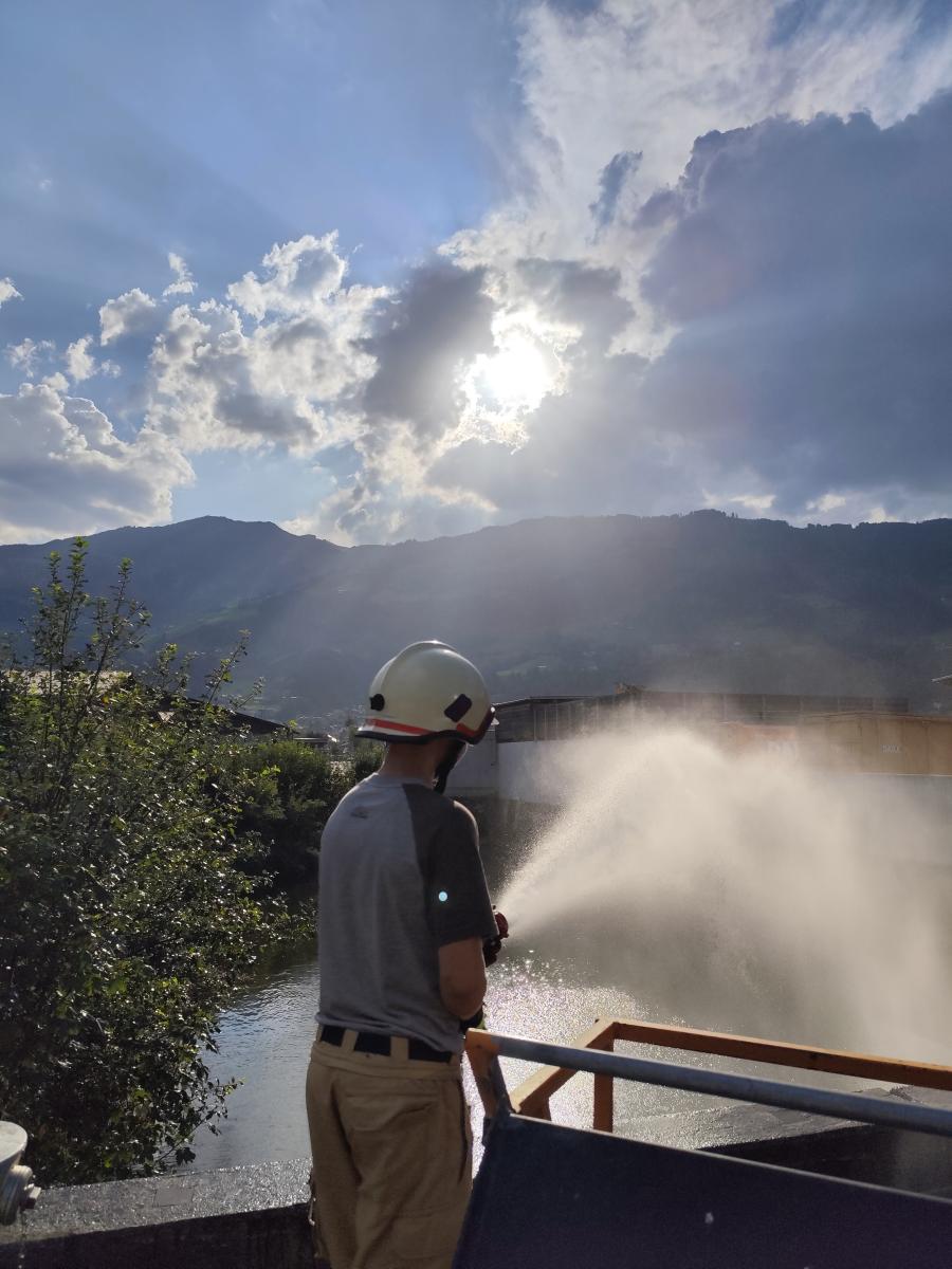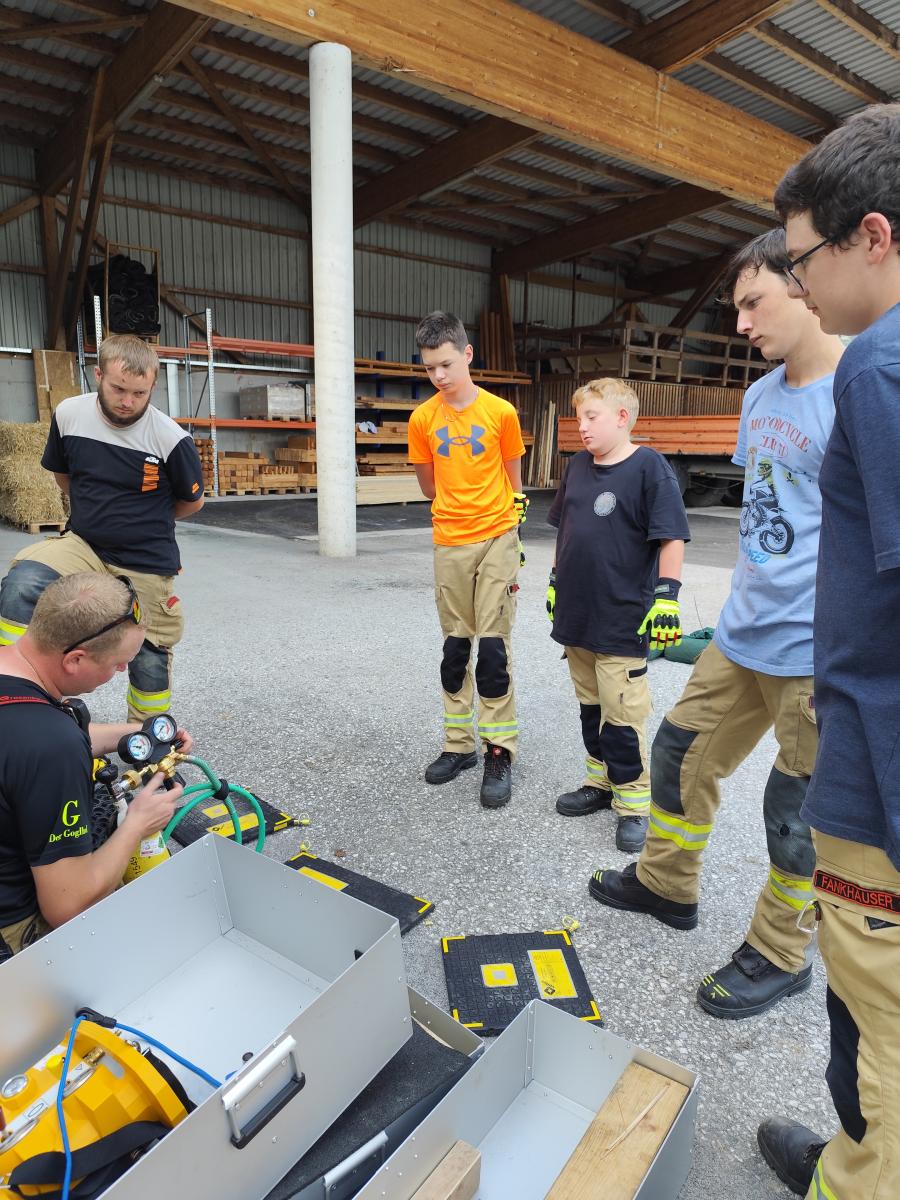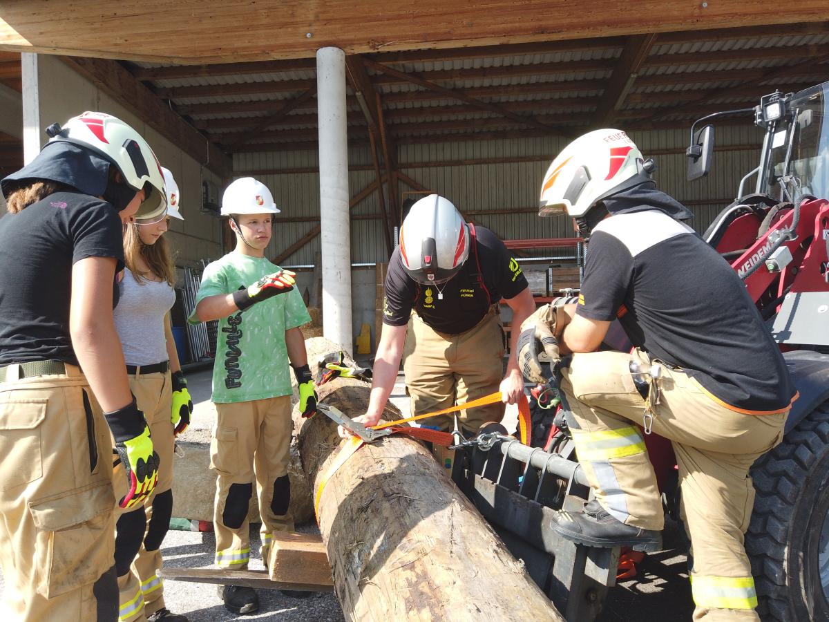 Ein Holzstapel beim Bauhof stand in Brand. Aufgrund der Größe des Feuers, gingen mehrere Anrufe bei der Leitstelle ein, die jedoch keine Alarmierung auslöste, da es sich um eine gemeldete Übung handelte. Bevor das Feuer endgültig gelöscht war, durften alle Jugendlichen die große Hitze hautnah spüren.