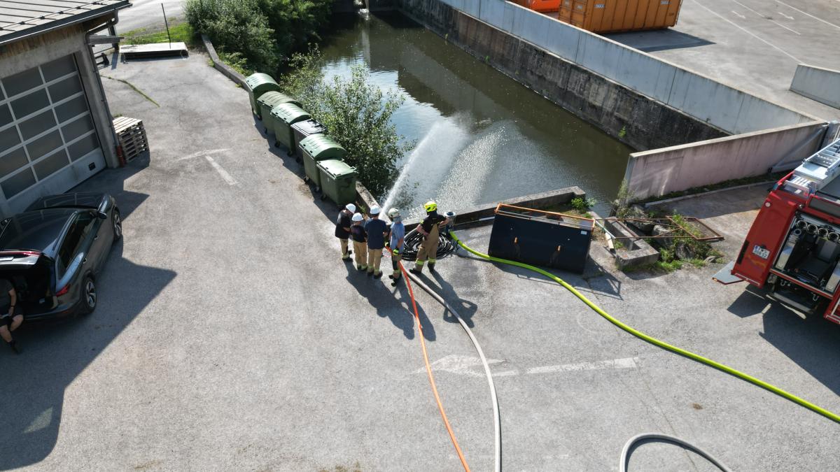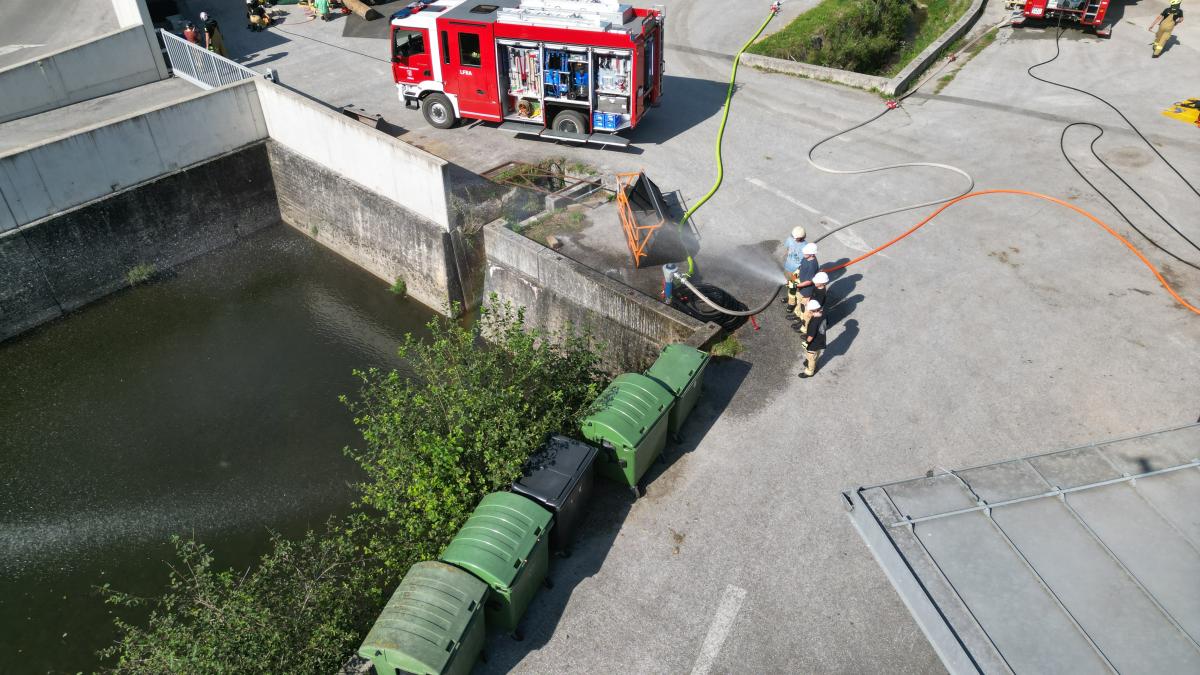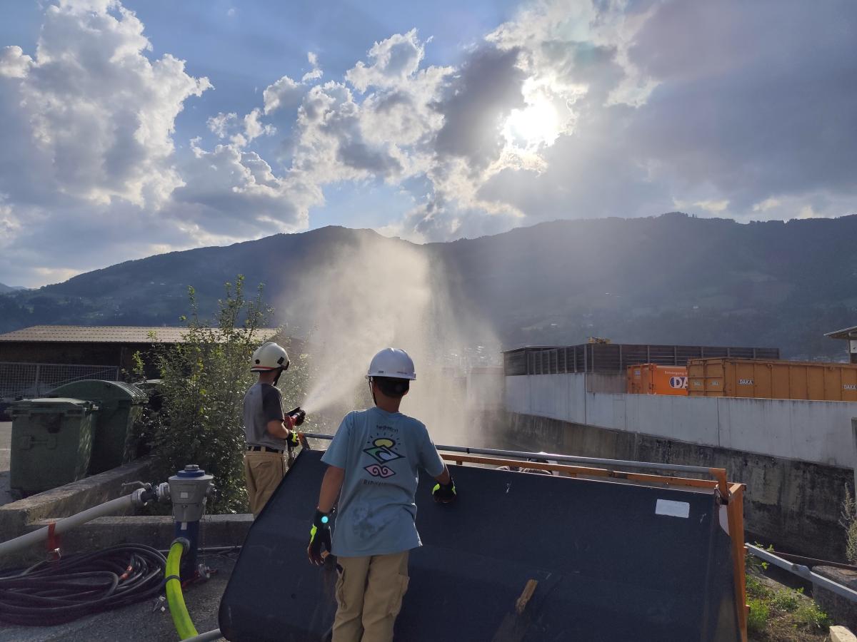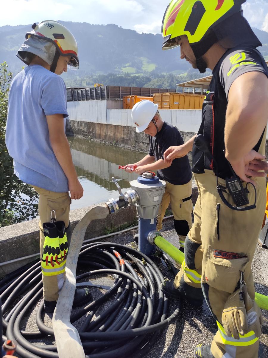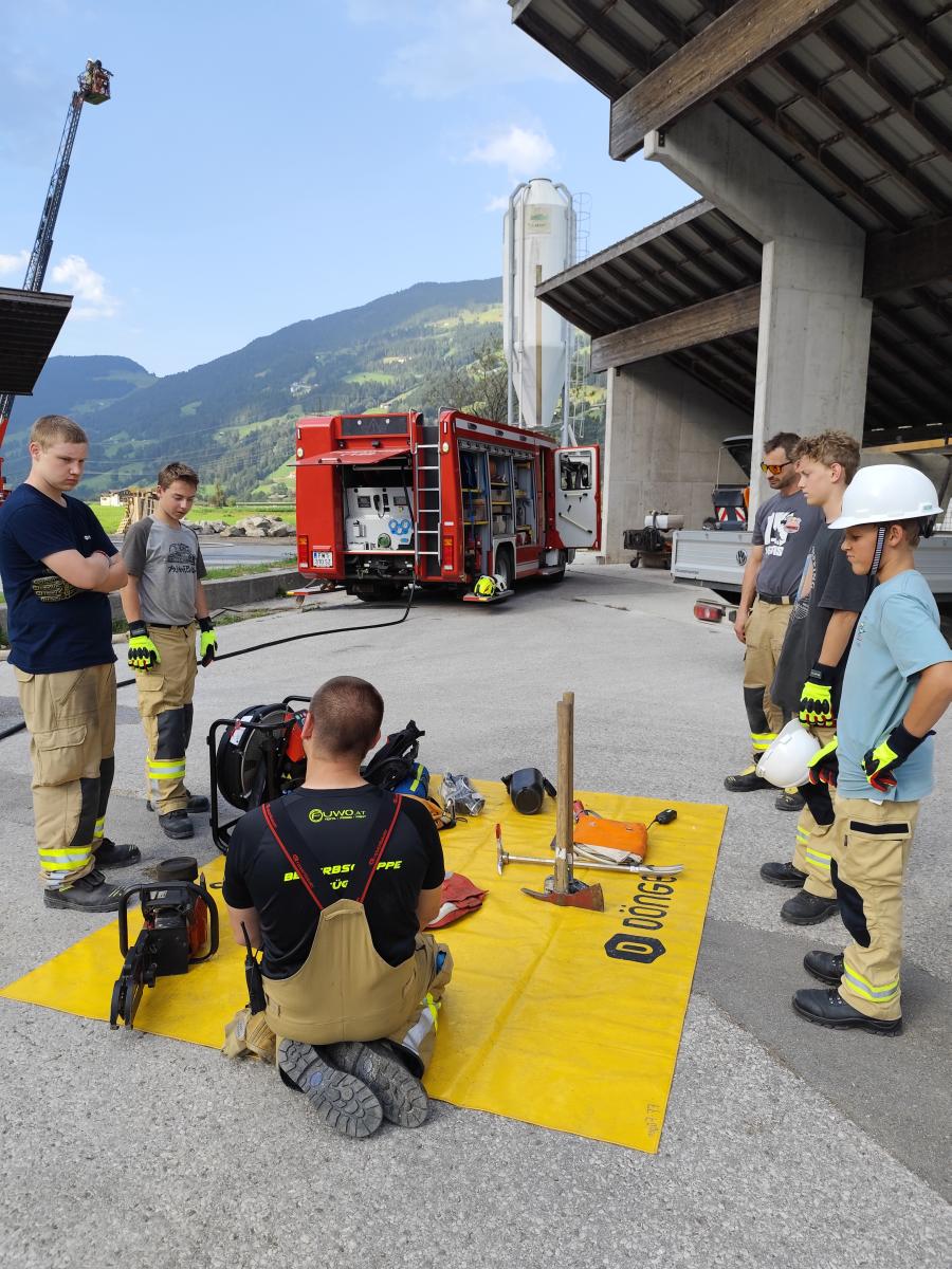 Ein Holzstapel beim Bauhof stand in Brand. Aufgrund der Größe des Feuers, gingen mehrere Anrufe bei der Leitstelle ein, die jedoch keine Alarmierung auslöste, da es sich um eine gemeldete Übung handelte. Bevor das Feuer endgültig gelöscht war, durften alle Jugendlichen die große Hitze hautnah spüren.
