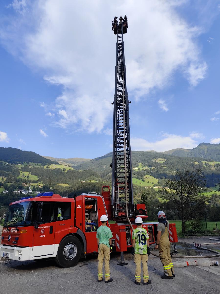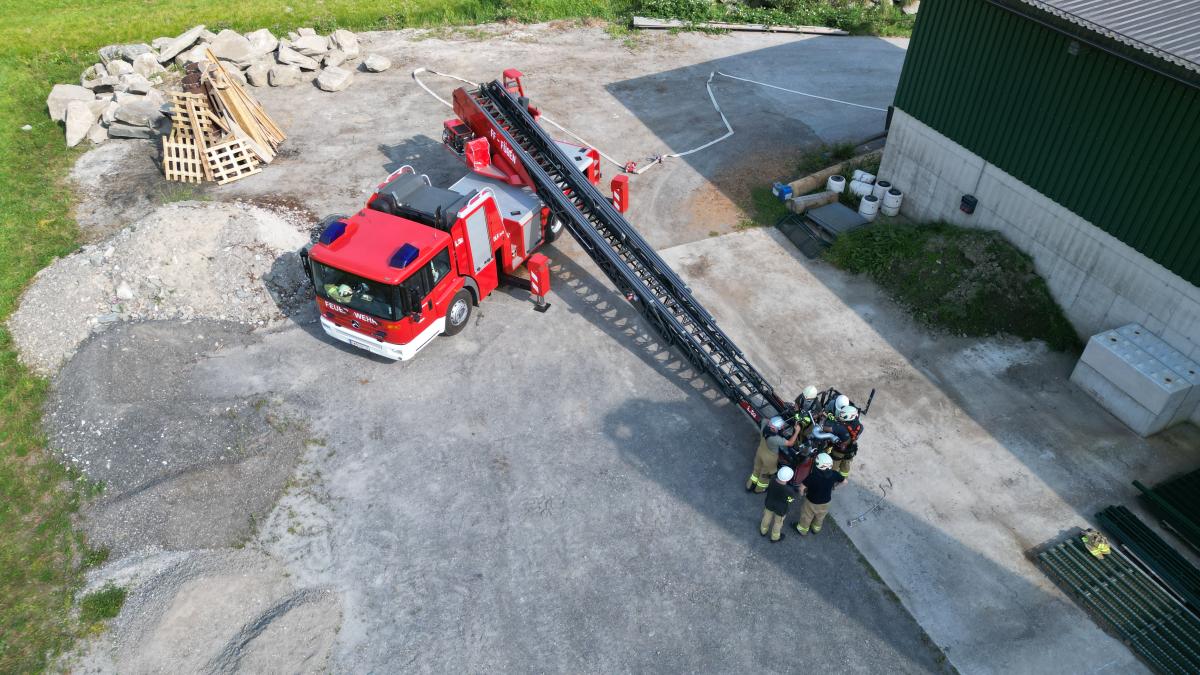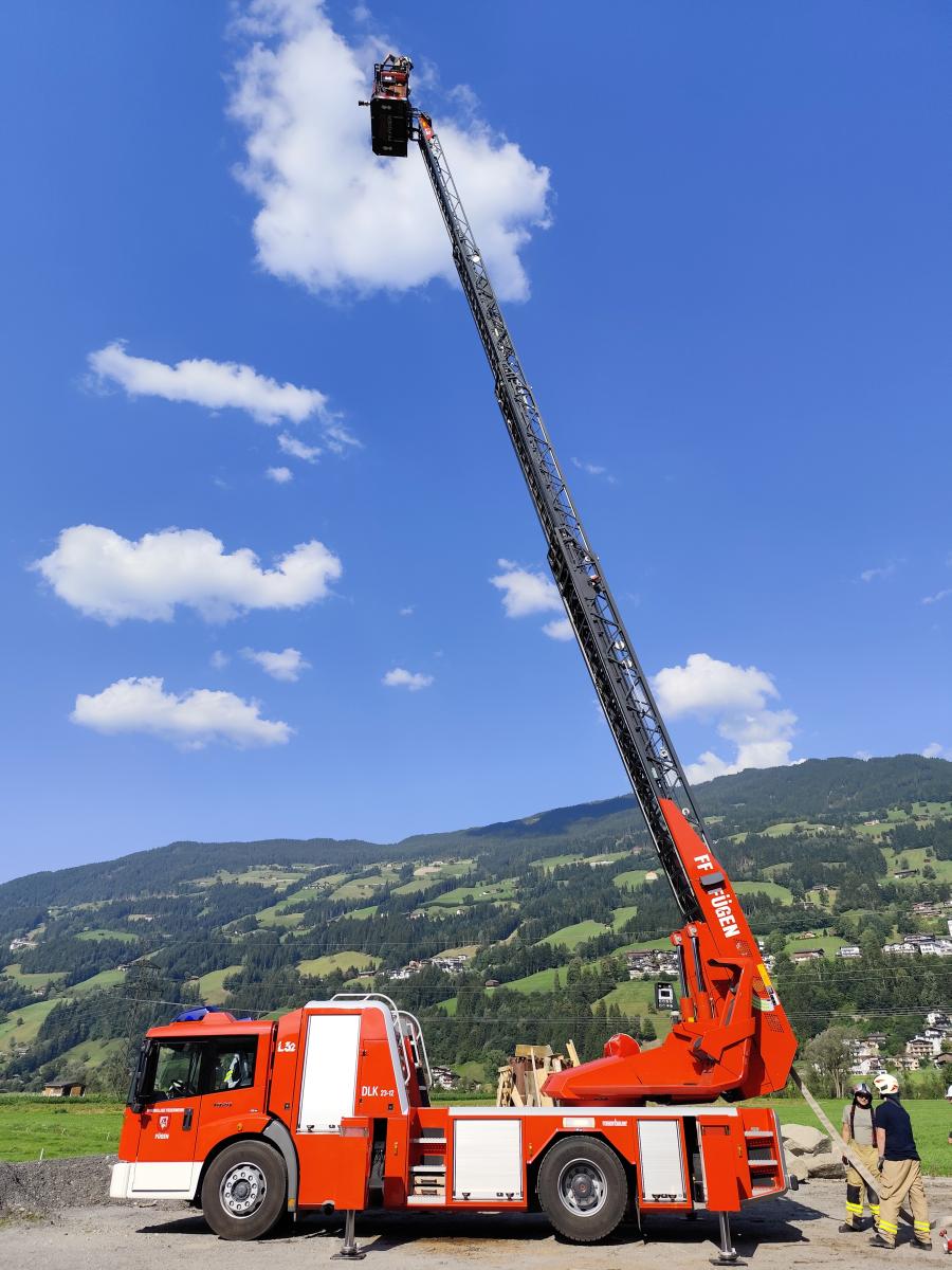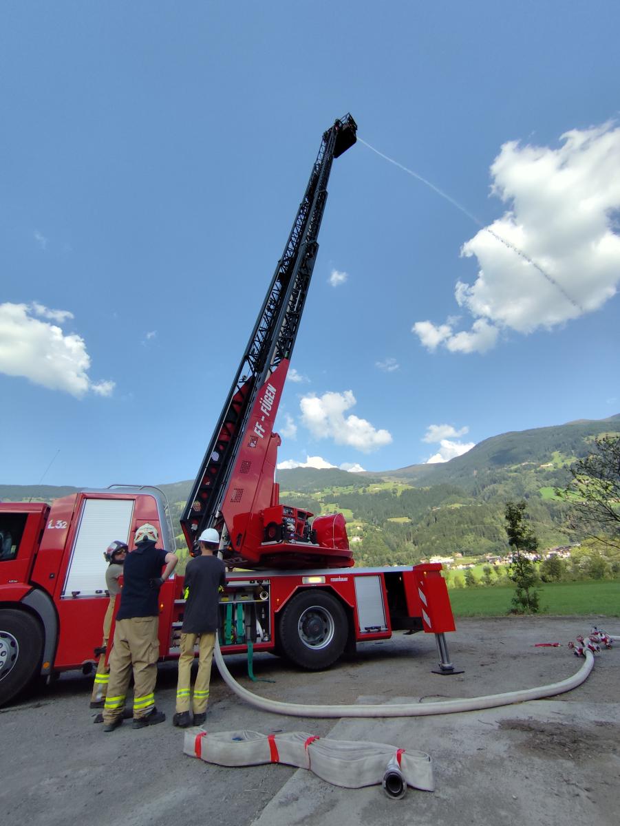 - DLK (Drehleiter) – Einschulung auf die Drehleiter sowie ein Löschangriff mit dem Wasserwerfer (Monitor).