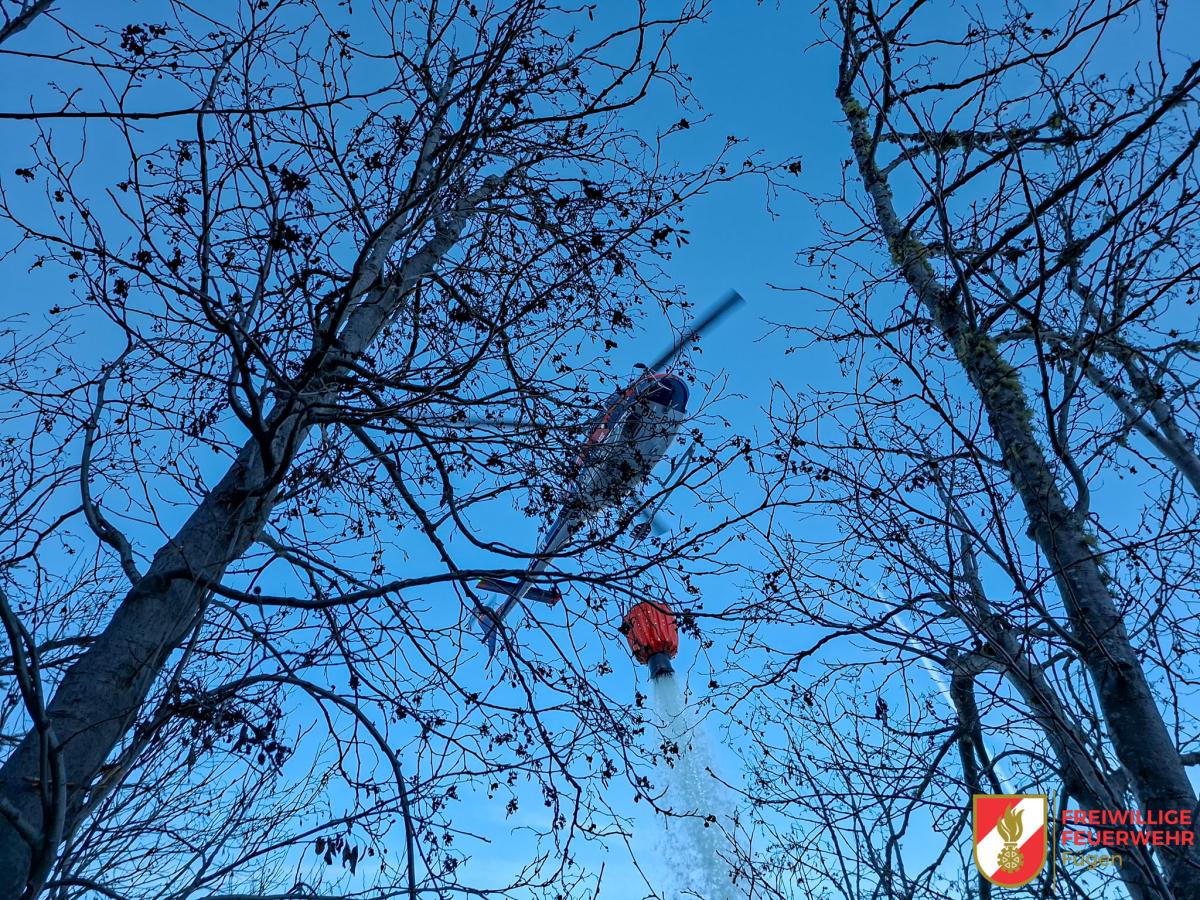 Da sich der Brandherd jedoch direkt unterhalb eines Speicherteiches befand, konnte der Hubschrauber rasch Wasser aufnehmen und gezielt am Einsatzort abwerfen. Dadurch gelang es, das Feuer schnell unter Kontrolle zu bringen. In weiterer Folge wurde das betroffene Gelände sorgfältig umgegraben, um verbliebene Glutnester abzulöschen.