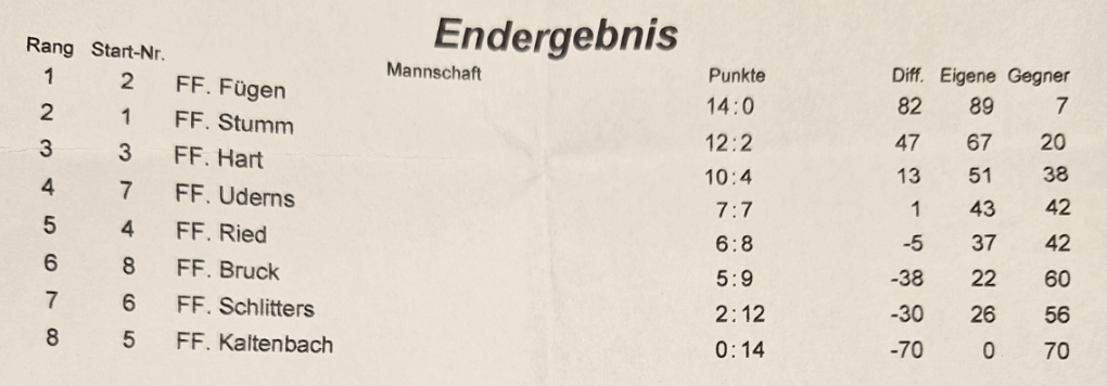 Beim diesjährigen Abschnitts-Stockschießen konnte die Feuerwehr Fügen erneut ihr Können unter Beweis stellen und sich diesmal den 1. Platz sichern 🏆
