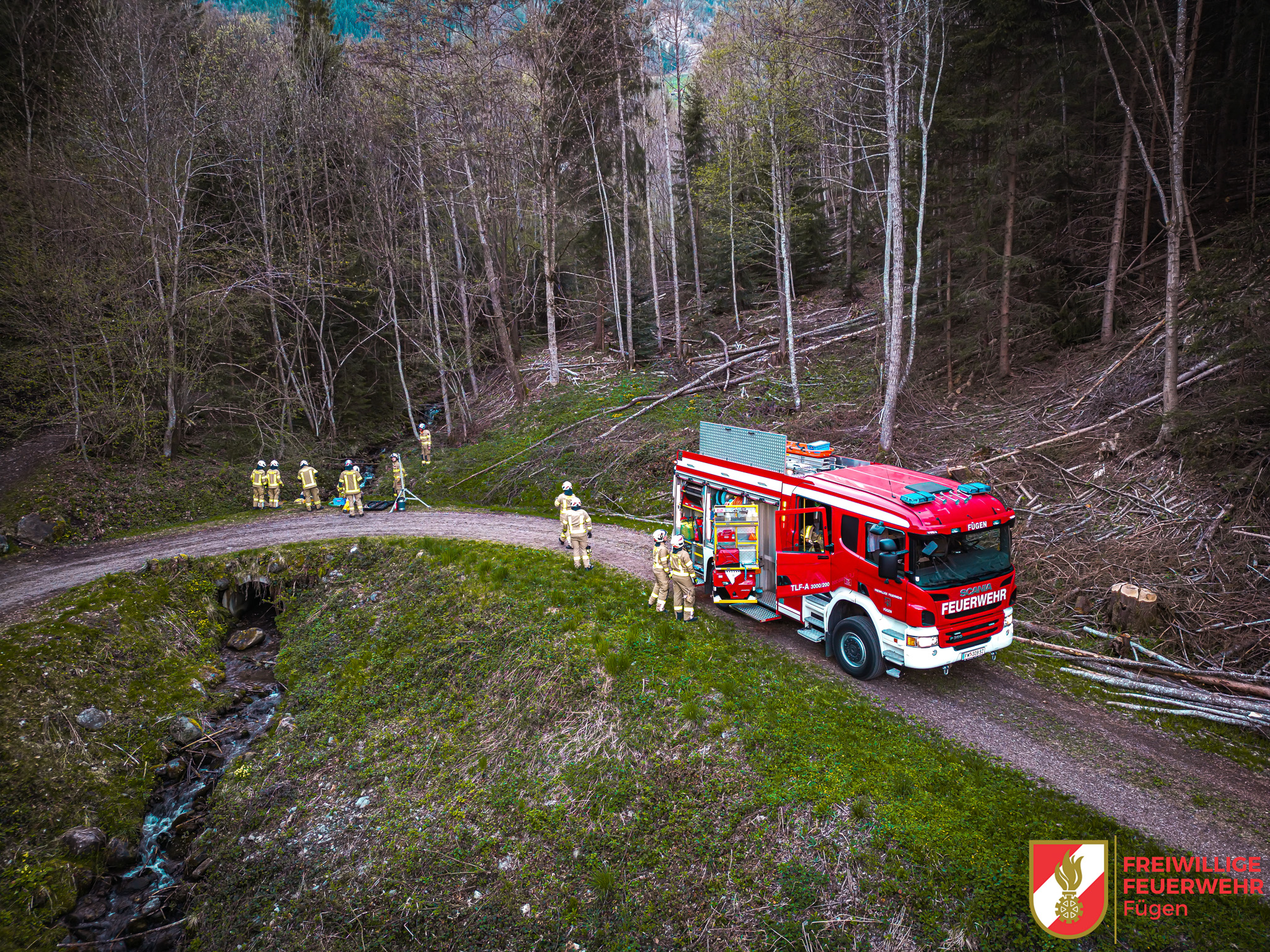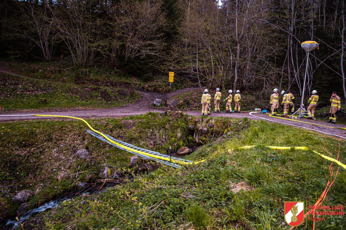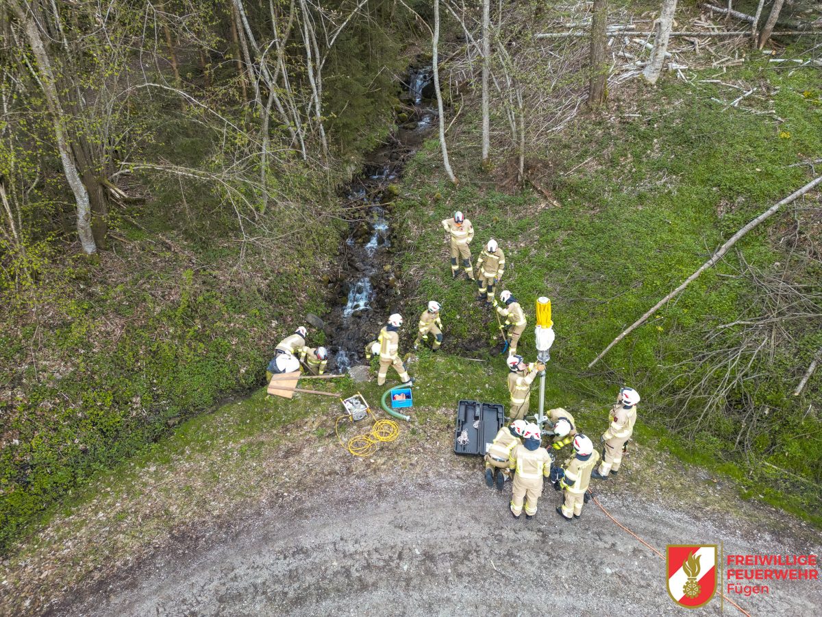 Im Rahmen einer Gruppenübung waren wir mit unserem TLF 1 und KLF im Einsatz. Unter vollem Körpereinsatz wurde zunächst eine Saugstelle errichtet. Von dort aus wurde unser TLF 1 sowohl über eine Chiemsee-Pumpe als auch mittels Tauchpumpe gespeist.