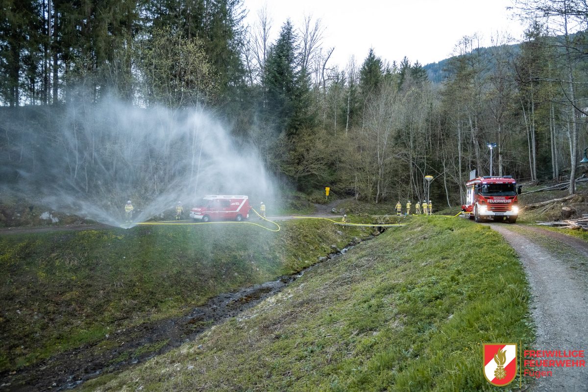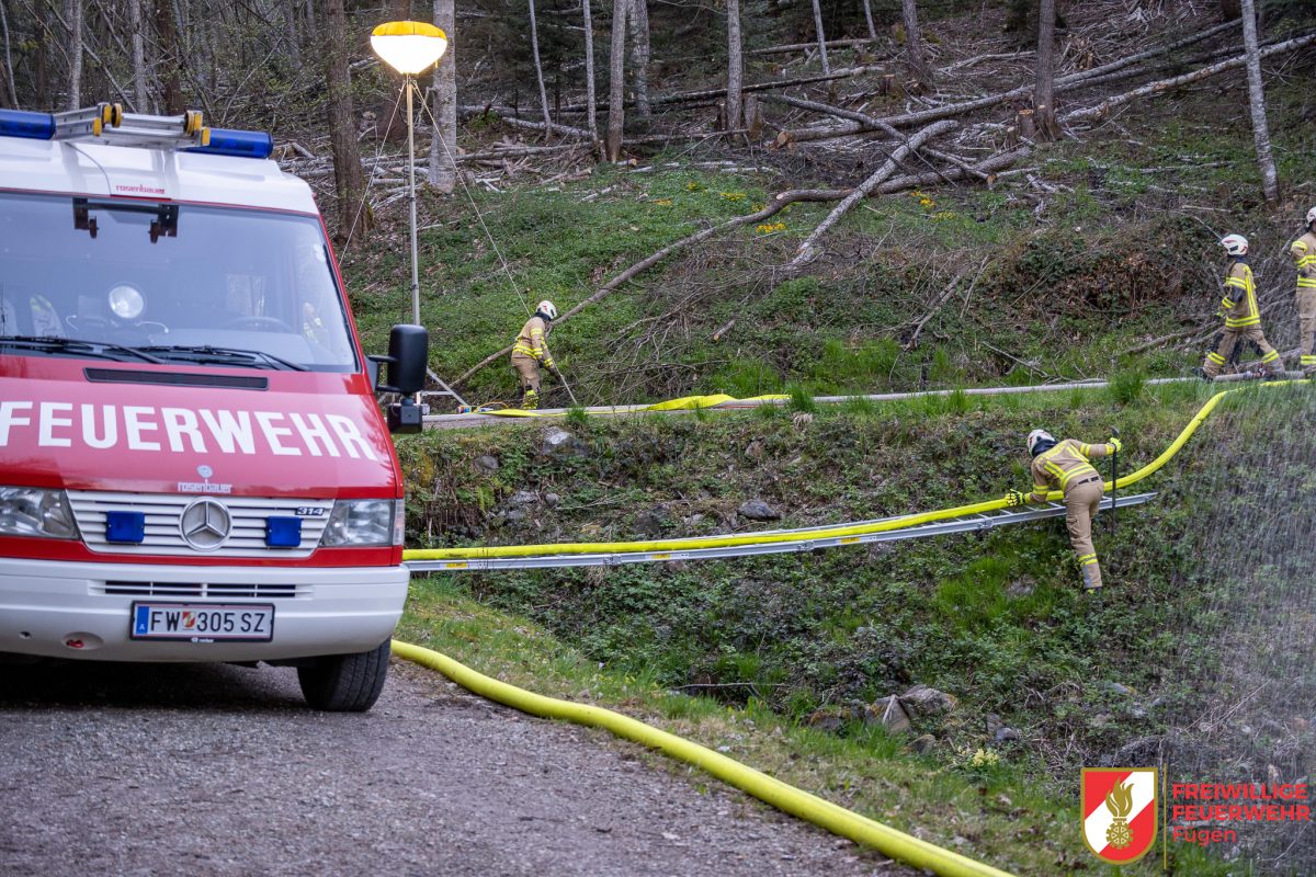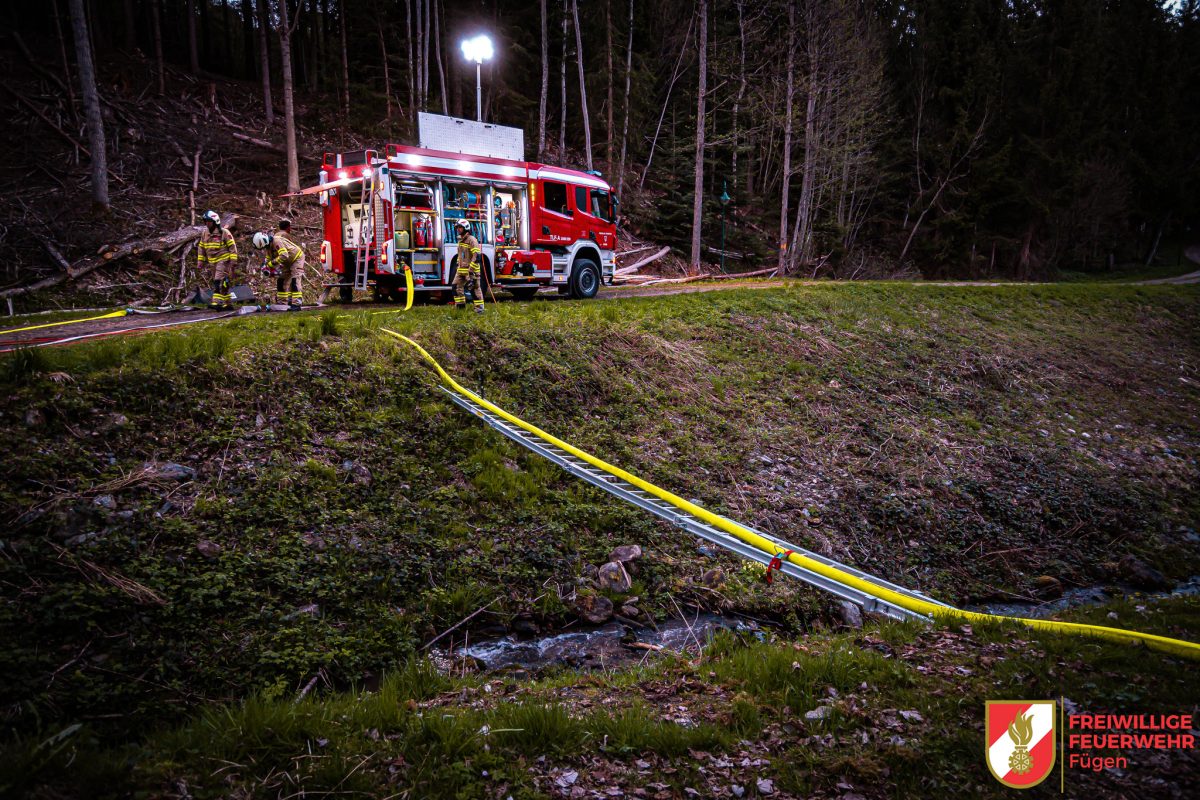 Anschließend erfolgte die Wasserförderung vom TLF über eine Leiterbrücke zu unserer Tragkraftspritze (TS). Von dort aus wurde schließlich das Hydroschild versorgt.